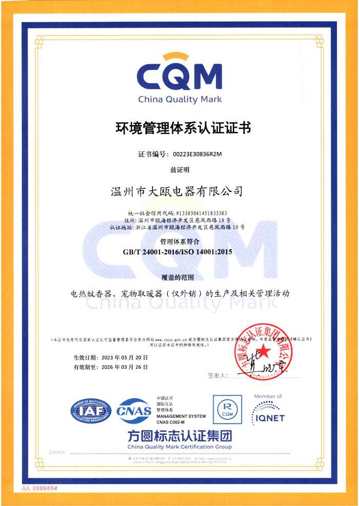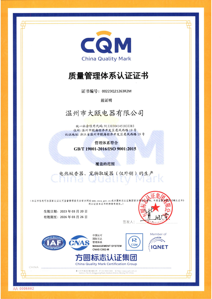秉承“以人為本,以質(zhì)取勝”的經(jīng)營理念,三十余載櫛風(fēng)沐雨,踐行“成就客戶、價值為本、誠信務(wù)實、追求卓越”的核心價值觀。大甌公司堅持以產(chǎn)研一體化的經(jīng)營模式與差異化的競爭戰(zhàn)略為基點,持續(xù)推出細(xì)分市場上的多種類產(chǎn)品,豐富產(chǎn)品矩陣,滿足消費者多樣化需求,助力新型驅(qū)蚊行業(yè)高速發(fā)展。